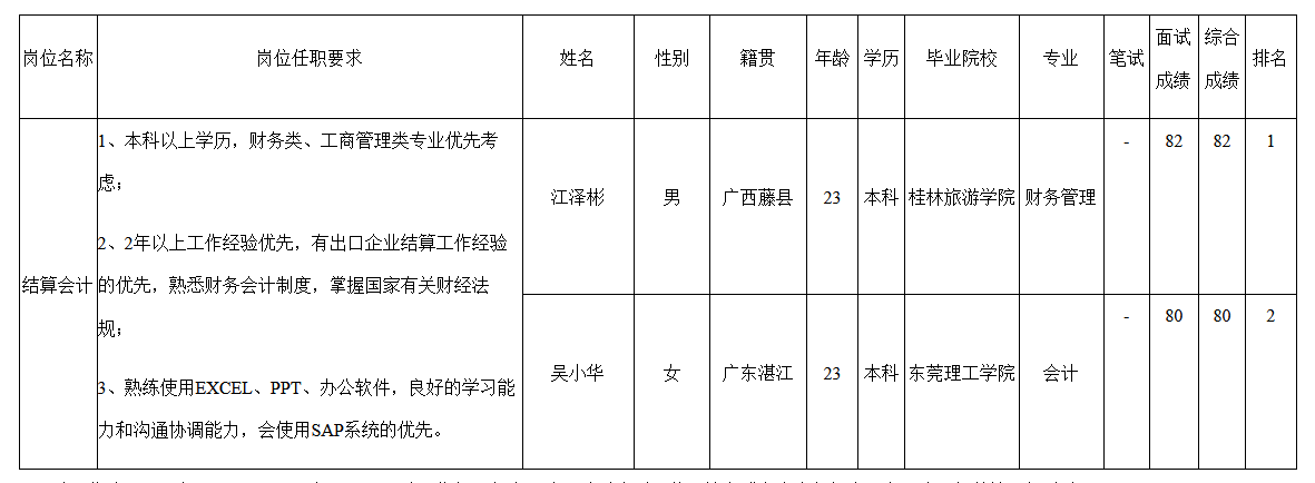 根據(jù)中山長虹電器有限公司發(fā)布的招聘公告及招聘相關(guān)規(guī)定,經(jīng)面試程序,現(xiàn)將面試成績予以公示。