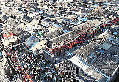 春節(jié)假期,平遙古城內(nèi)游人如織。