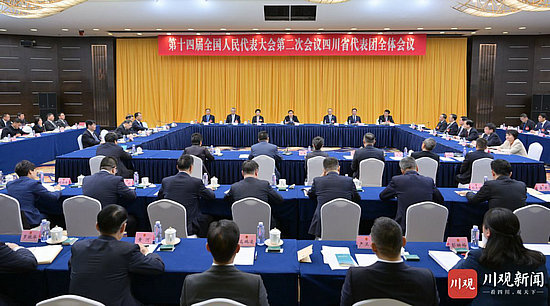 ?。吃拢橙障挛?,在北京出席十四屆全國人大二次會(huì)議的四川代表團(tuán)在駐地舉行全體會(huì)議。省委書記、省人大常委會(huì)主任王曉暉主持會(huì)議并講話。