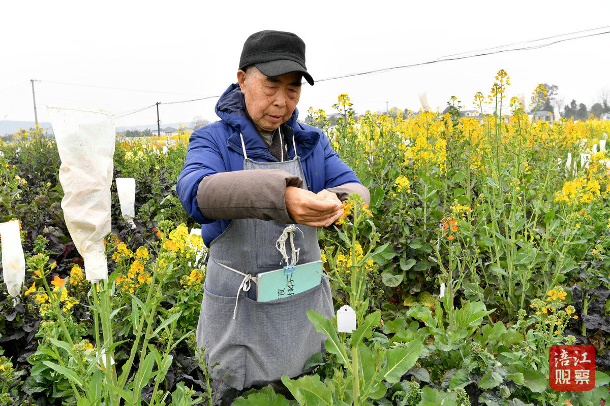 不遠(yuǎn)處,86歲的父親袁代斌系著圍裙,對(duì)每一株套袋的油菜花進(jìn)行詳細(xì)登記并制作掛牌。“這就好比是人的身份證,登記日期、開(kāi)花時(shí)間、在哪一壟、是哪一株等內(nèi)容都要寫(xiě)清楚。”從市農(nóng)科院退休后,袁代斌繼續(xù)發(fā)揮余熱,與兒子、女婿一起進(jìn)行油菜育種。“套袋子的目的是為了保持種子的純度。”袁代斌說(shuō),等到種子成熟以后,取下袋子,將剪下的部分放進(jìn)掛儲(chǔ)室自然晾干搓下油菜籽后,才能進(jìn)入實(shí)驗(yàn)室等其它程序。