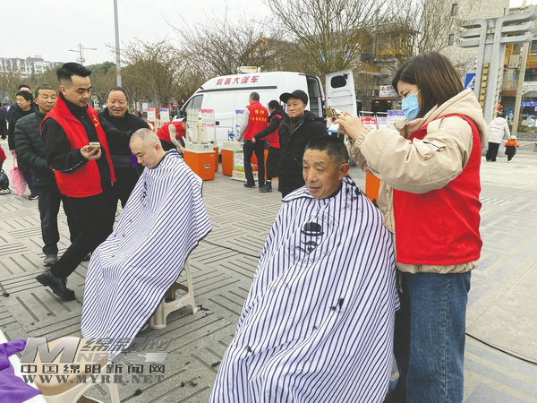 北川志愿者開展愛心義剪活動。(記者 胥江 攝)