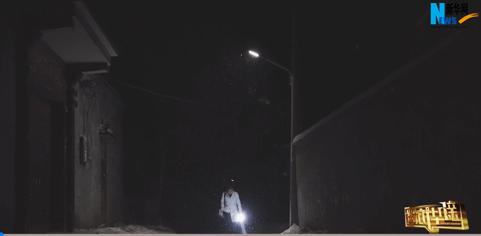 雪夜,一盞路燈,一只手電筒,一位身著白大褂背著藥箱的男子,獨(dú)自行走在鄉(xiāng)間小路上。