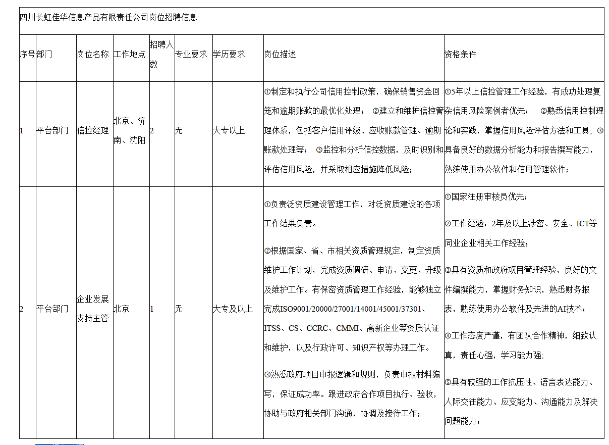 根據(jù)公司經(jīng)營(yíng)發(fā)展需要,面向社會(huì)公開(kāi)招聘以下崗位: