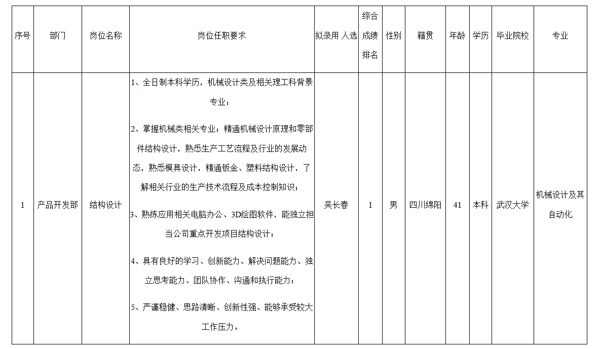 根據(jù)四川長虹空調(diào)有限公司發(fā)布的招聘公告及招聘相關(guān)規(guī)定,經(jīng)面試、體檢等程序,擬錄用吳長春到長虹空調(diào)工作,現(xiàn)予以公示,具體情況如下: