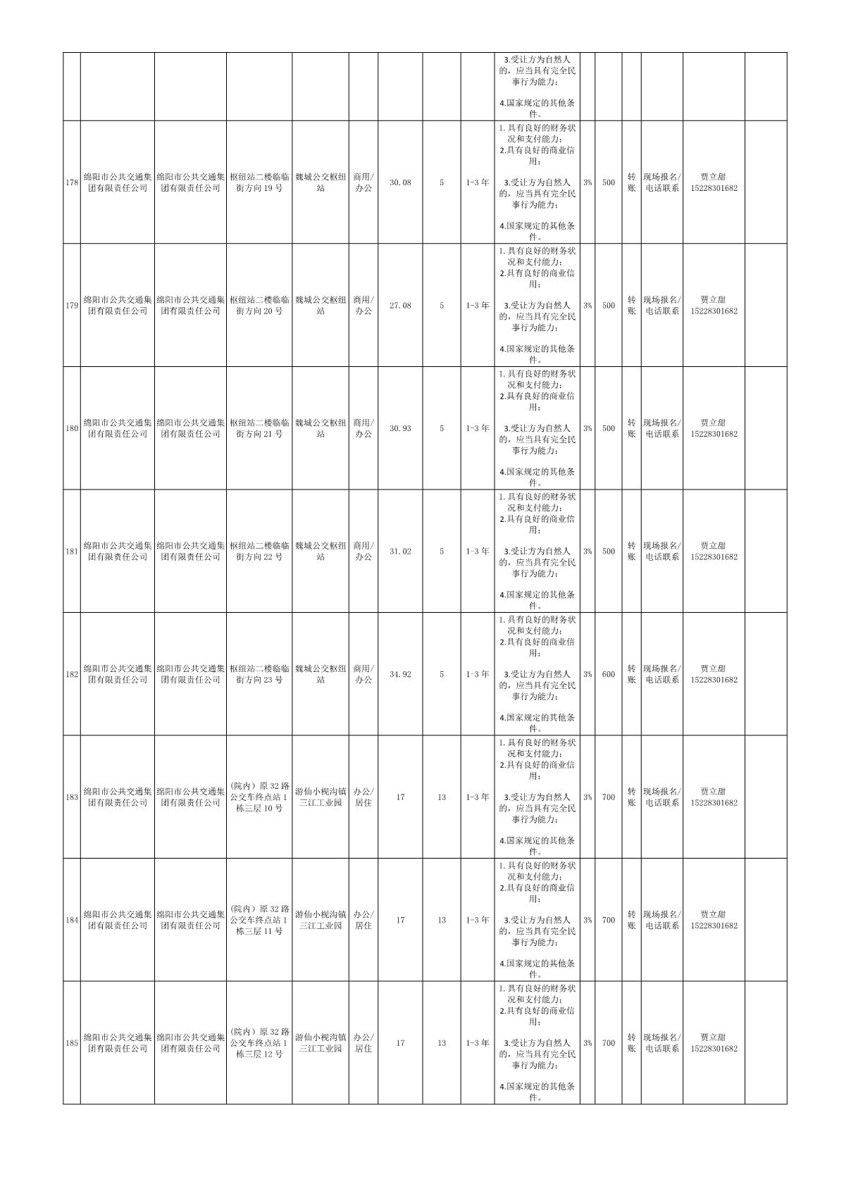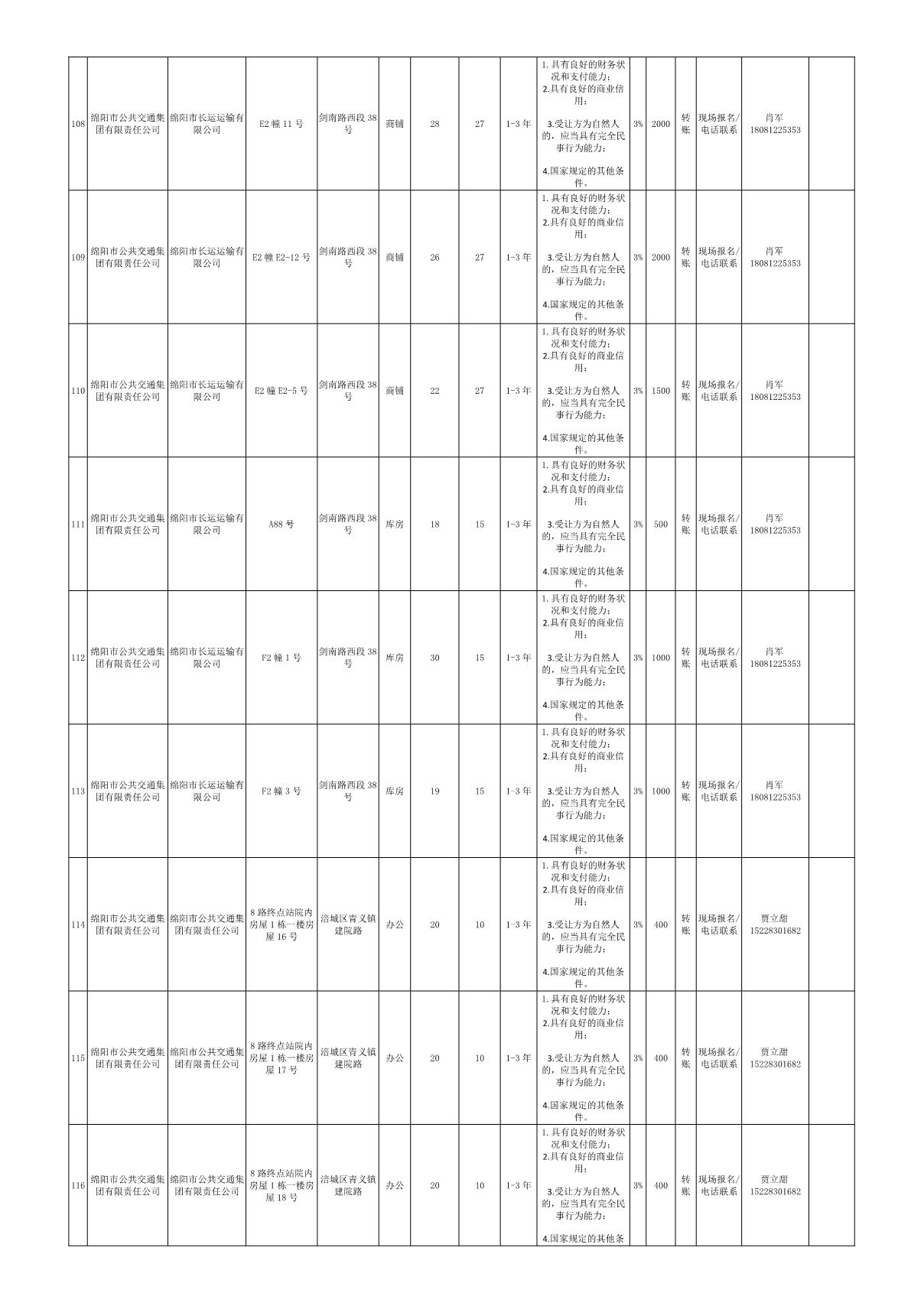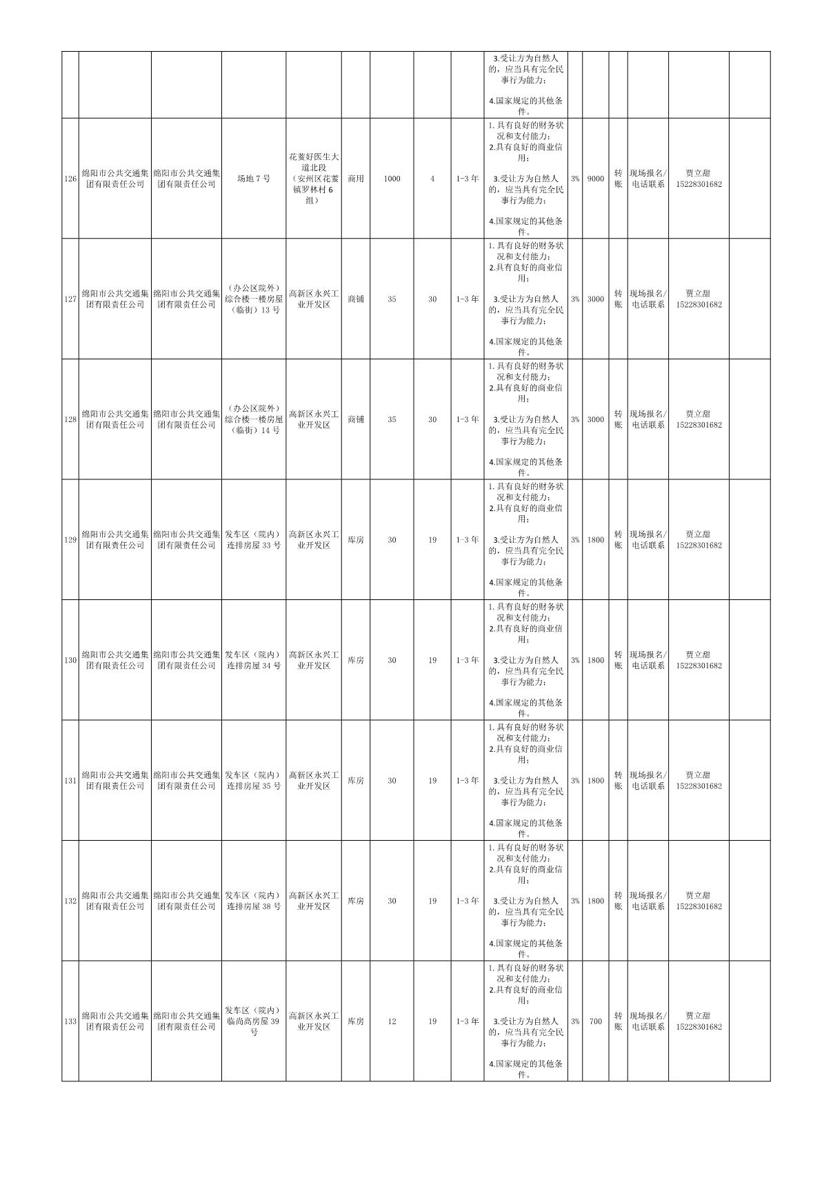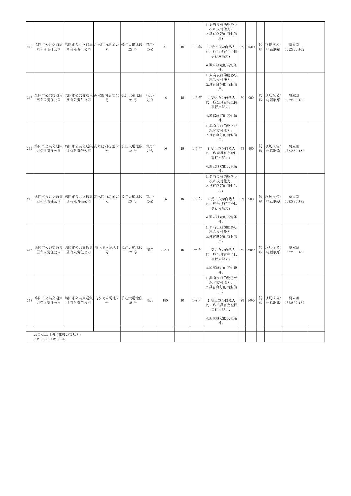 綿陽市公共交通集團(tuán)有限責(zé)任公司資產(chǎn)出租公告(2-3月)