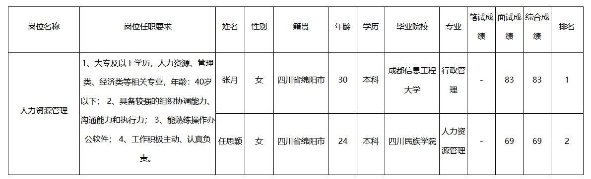 根據(jù)四川九州電子科技股份有限公司發(fā)布的招聘公告及招聘相關(guān)規(guī)定,經(jīng)筆試、面試等程序,現(xiàn)將筆試(面試)成績予以公示。