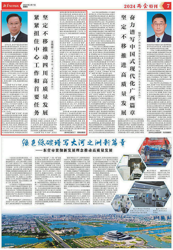 3月7日,《新華每日電訊》刊發(fā)四川省委書記、省人大常委會(huì)主任王曉暉署名文章《緊緊扭住中心工作和首要任務(wù) 堅(jiān)定不移推動(dòng)四川高質(zhì)量發(fā)展》。