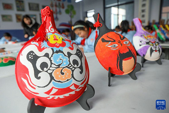 3月7日,河南省寶豐縣山河路小學(xué)的學(xué)生在繪制馬勺臉譜。