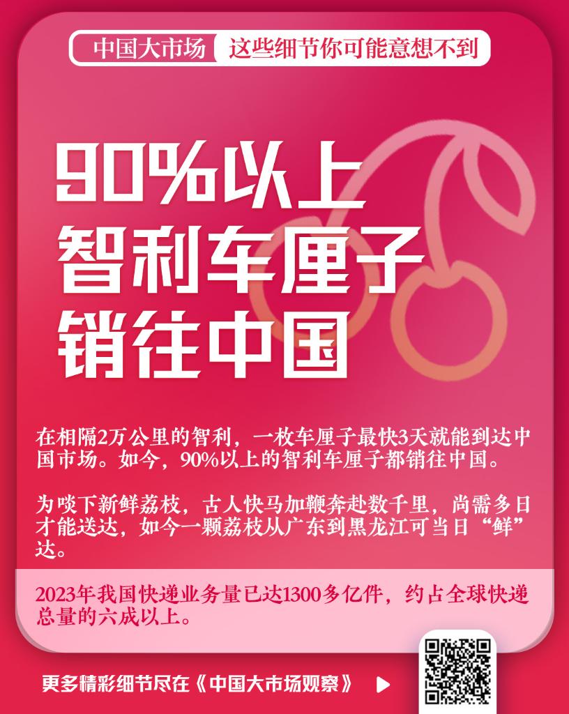 肯德基中國門店數(shù)已超美國本土、九成以上智利車厘子銷往中國、蘋果公司超四分之三主要供應商在中國生產(chǎn)、中國數(shù)字支付規(guī)模占全球份額近一半……在廣袤的中國市場里,有哪些細節(jié)意想不到?一起來看↓↓