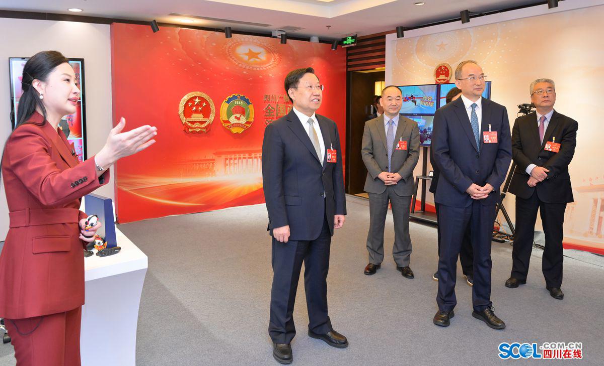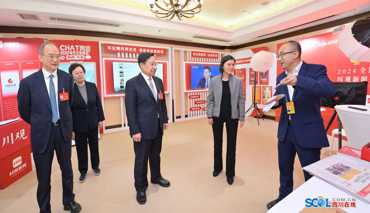 王曉暉、黃強先后來到四川日報報業(yè)集團、四川廣播電視臺和四川新傳媒集團設(shè)在駐地的演播廳,聽取各媒體宣傳報道總體情況介紹,詳細了解重大主題報道、重點選題策劃、人工智能技術(shù)賦能產(chǎn)品創(chuàng)新等情況,并饒有興致地察看全國兩會報道作品、特色文創(chuàng)產(chǎn)品展陳等。王曉暉對中央有關(guān)媒體和我省主要媒體全國兩會宣傳報道取得的階段性成效給予肯定,對大家的辛勤付出表示感謝。他說,今年全國兩會,是在新中國成立75周年、實現(xiàn)“十四五”規(guī)劃目標任務(wù)的關(guān)鍵一年召開的重要會議,舉國關(guān)注、舉世矚目。連日來,大家聚焦大會主題,緊貼民生關(guān)切,充分發(fā)揮媒體融合優(yōu)勢,堅持會內(nèi)會外緊密結(jié)合、北京四川時時聯(lián)動、前線后方密切配合,推出了一批有深度、有溫度、有力度的新聞報道,全面反映了大會盛況,展示了代表委員履職風采,展現(xiàn)了全省上下朝著全面建設(shè)社會主義現(xiàn)代化四川闊步前行的奮進姿態(tài)。希望大家發(fā)揚連續(xù)作戰(zhàn)精神,再接再厲、善始善終做好各項報道工作,為全國兩會圓滿成功營造濃厚氛圍。