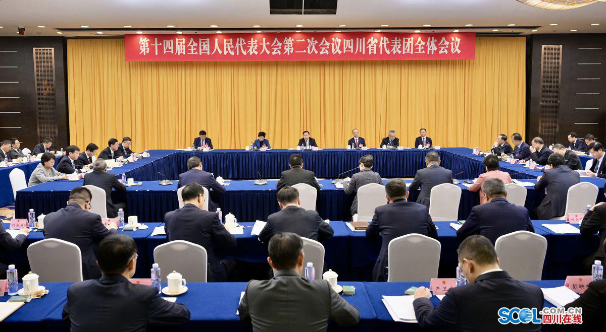3月11日上午,出席十四屆全國人大二次會議的四川代表團(tuán)在駐地舉行全體會議。省委書記、省人大常委會主任、代表團(tuán)團(tuán)長王曉暉主持會議并講話。省委副書記、省長、代表團(tuán)副團(tuán)長黃強(qiáng),省委副書記、成都市委書記、代表團(tuán)副團(tuán)長施小琳參加。