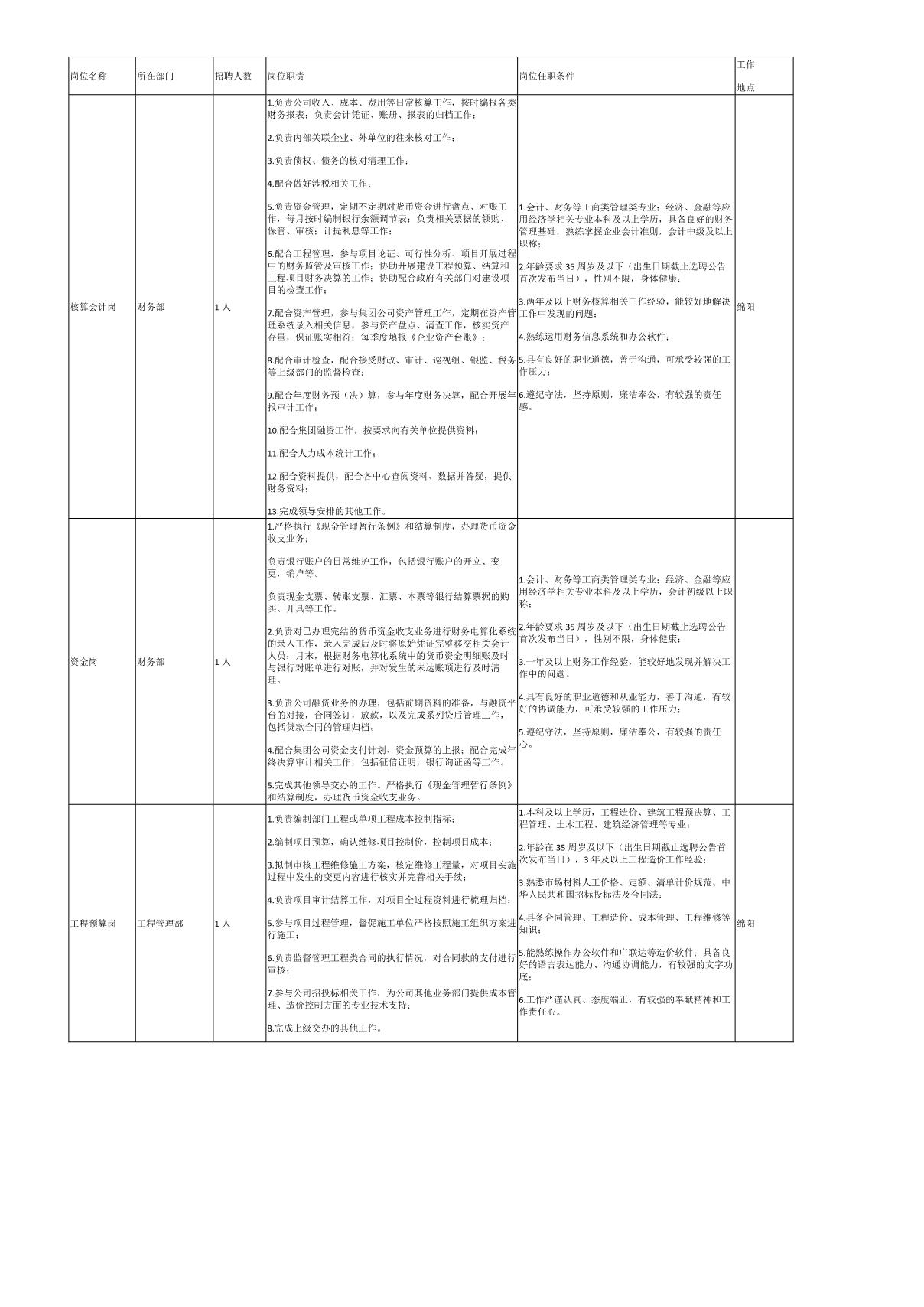 二、招聘崗位及任職條件