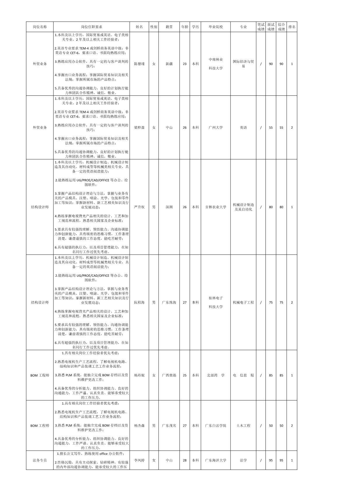 根據(jù)廣東長(zhǎng)虹電子有限公司發(fā)布的招聘公告及招聘相關(guān)規(guī)定,經(jīng)面試等程序,現(xiàn)將面試成績(jī)予以公示。