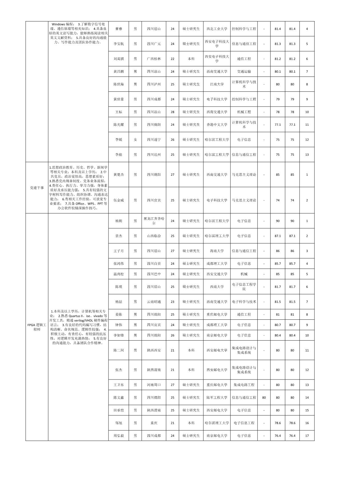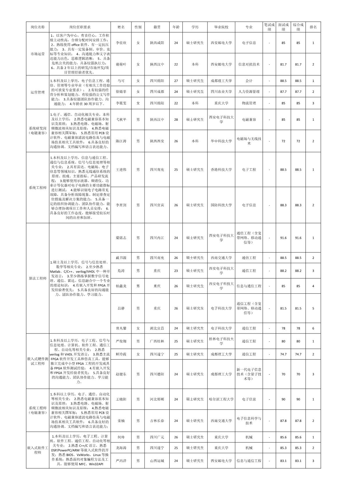 根據(jù)四川九洲電器集團有限責(zé)任公司發(fā)布的招聘公告及招聘相關(guān)規(guī)定,經(jīng)筆試、面試等程序,現(xiàn)將筆試(面試)成績予以公示。