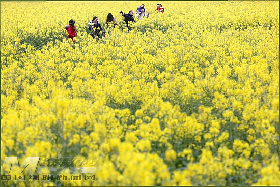在三臺(tái)縣蘆溪鎮(zhèn)、新魯鎮(zhèn)、金石鎮(zhèn)的公路兩側(cè),漫山遍野的油菜花吸引了無(wú)數(shù)小蜜蜂飛來(lái)飛去忙著采蜜。每年油菜花開(kāi)的季節(jié),天南地北的“追花人”紛紛來(lái)到綿陽(yáng),在金浪翻滾的油菜花田中收獲“甜蜜”。