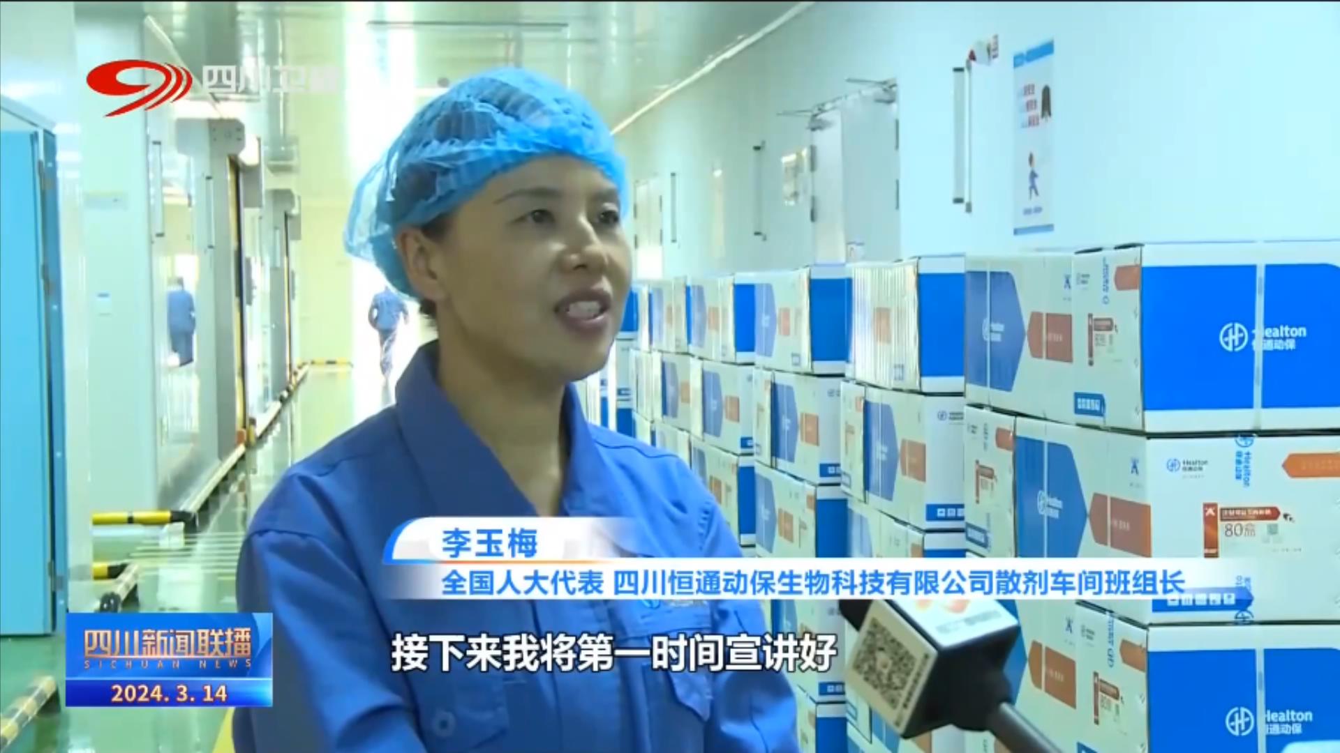 在四川恒通動保生物科技有限公司,剛從北京返回的全國人大代表李玉梅,也和大家分享了自己的收獲。在生產(chǎn)車間,李玉梅和同事們談起了《政府工作報告》中關于發(fā)展新質(zhì)生產(chǎn)力的內(nèi)容,這讓大家對企業(yè)的發(fā)展道路有了明晰的方向。