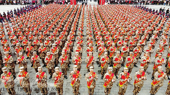 據(jù)介紹,近年來(lái),全市上下深入學(xué)習(xí)貫徹習(xí)近平強(qiáng)軍思想,堅(jiān)決落實(shí)黨中央、國(guó)務(wù)院、中央軍委決策部署,聚焦國(guó)防和軍隊(duì)現(xiàn)代化建設(shè)目標(biāo)任務(wù),緊貼部隊(duì)?wèi)?zhàn)斗力生成現(xiàn)實(shí)需求,堅(jiān)持依法征兵、質(zhì)量征兵、廉潔征兵,積極向部隊(duì)輸送優(yōu)質(zhì)兵員。在征兵過(guò)程中,我市利用多平臺(tái)播放宣傳公益片、多渠道發(fā)布兵役登記公告、多時(shí)段拓寬宣傳受眾面,著力營(yíng)造參軍擁軍的濃厚氛圍。同時(shí),突出大學(xué)畢業(yè)生征集重點(diǎn),嚴(yán)格把好體檢“程序關(guān)”和體檢工作人員“素質(zhì)關(guān)”,切實(shí)把身心健康、素質(zhì)過(guò)硬的優(yōu)秀青年送入部隊(duì)。此外,還通過(guò)精選教官隊(duì)伍、精設(shè)教育內(nèi)容、精心搞好保障等方式,扎實(shí)做好役前教育各項(xiàng)工作。