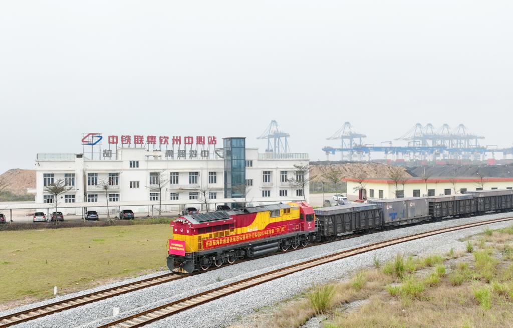 3月17日上午,一列滿載緬甸黑芝麻、海南椰子汁、廣西白糖等貨物的海鐵聯(lián)運班列,從欽州鐵路集裝箱中心站緩緩發(fā)出駛向四川城廂站。這是2024年西部陸海新通道開行的第2000列海鐵聯(lián)運班列,同比增長16.8%,提前14天完成一季度班列開行任務。