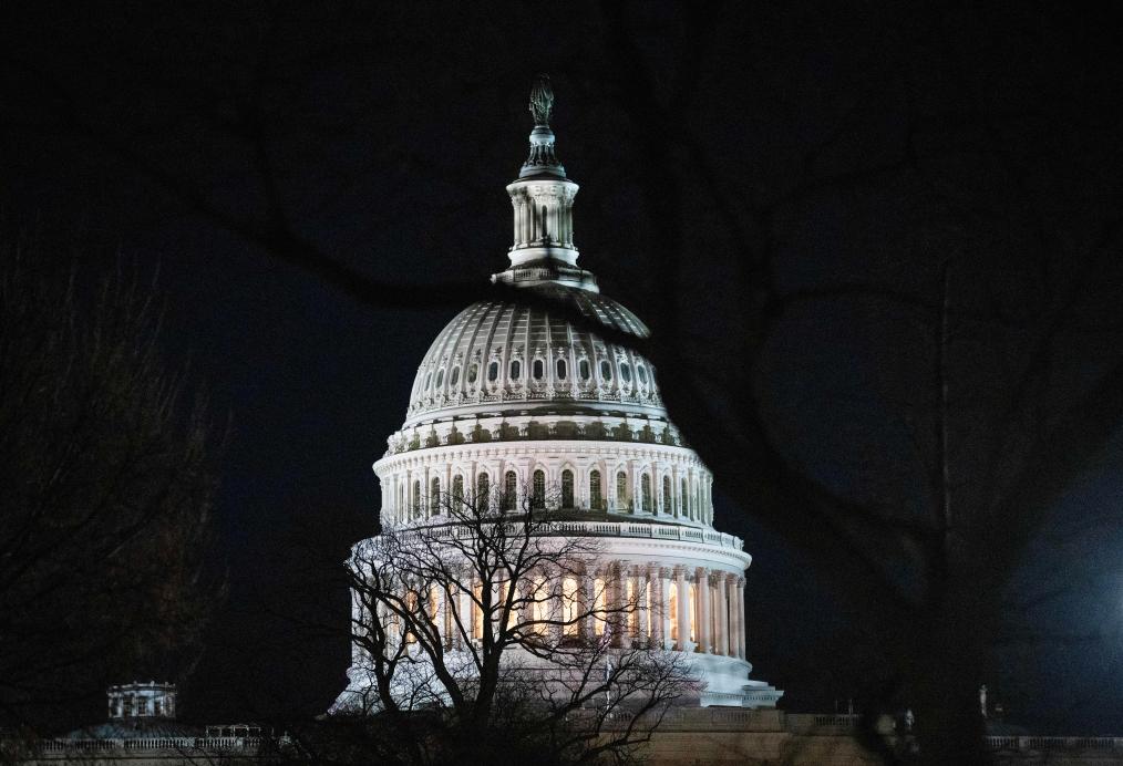 這是2月13日在美國(guó)首都華盛頓拍攝的國(guó)會(huì)大廈。 新華社記者 劉杰 攝