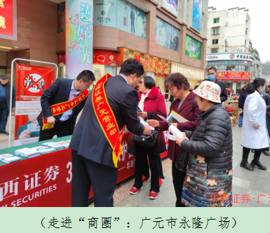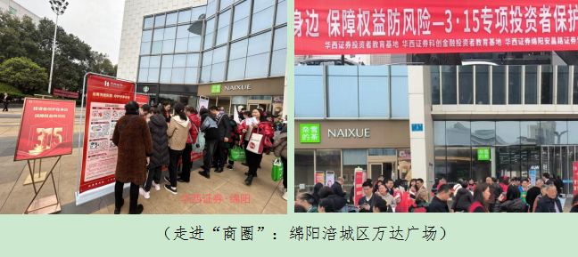在綿陽市涪城區(qū)萬達(dá)廣場、綿陽科技城新區(qū)樂薈城、三臺縣迎賓廣場、宏達(dá)商城什邡小廣場、廣元市永隆廣場等地,專項活動工作人員通過派發(fā)宣傳折頁等投教宣傳品、面對面交流、線上有獎知識問答等形式向社會公眾普及金融知識,提升金融安全意識,樹立理性的投資理念。