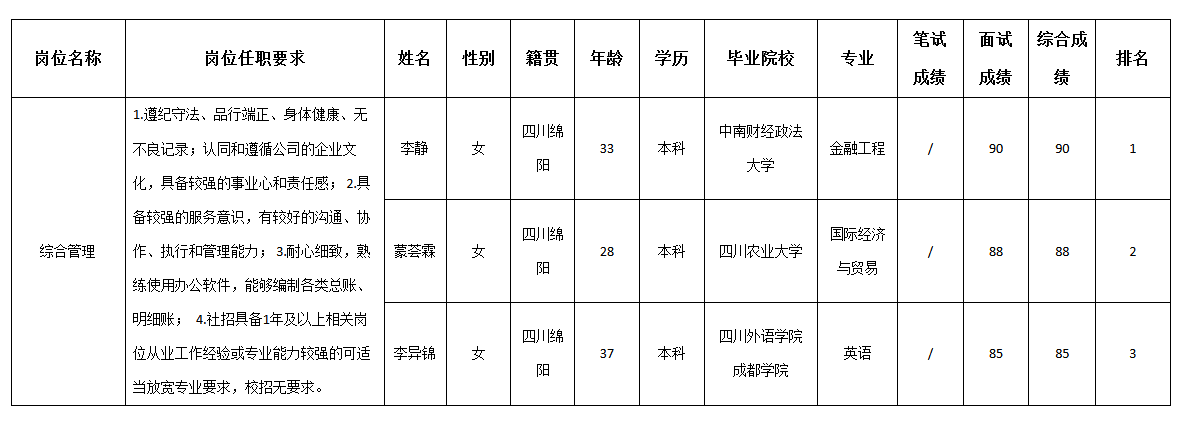 四川九強通信科技有限公司關(guān)于招聘綜合管理成績的公示