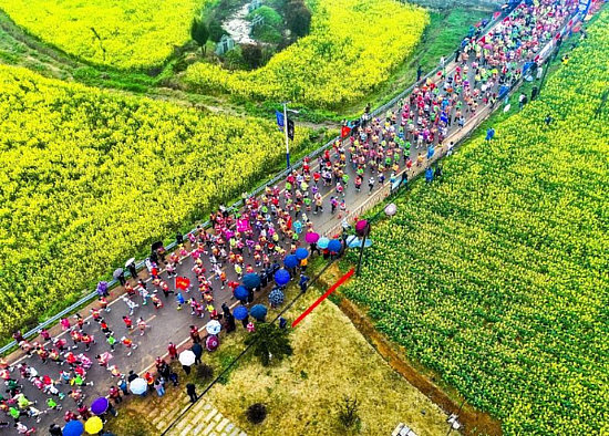 3月17日,2024瑞昌第四屆鄉(xiāng)村花海馬拉松在江西省瑞昌市武蛟鄉(xiāng)開跑,此次比賽設(shè)有半程馬拉松和歡樂(lè)迷你馬拉松,共有來(lái)自全國(guó)各地的近5000名選手在金色的油菜花海中暢跑。