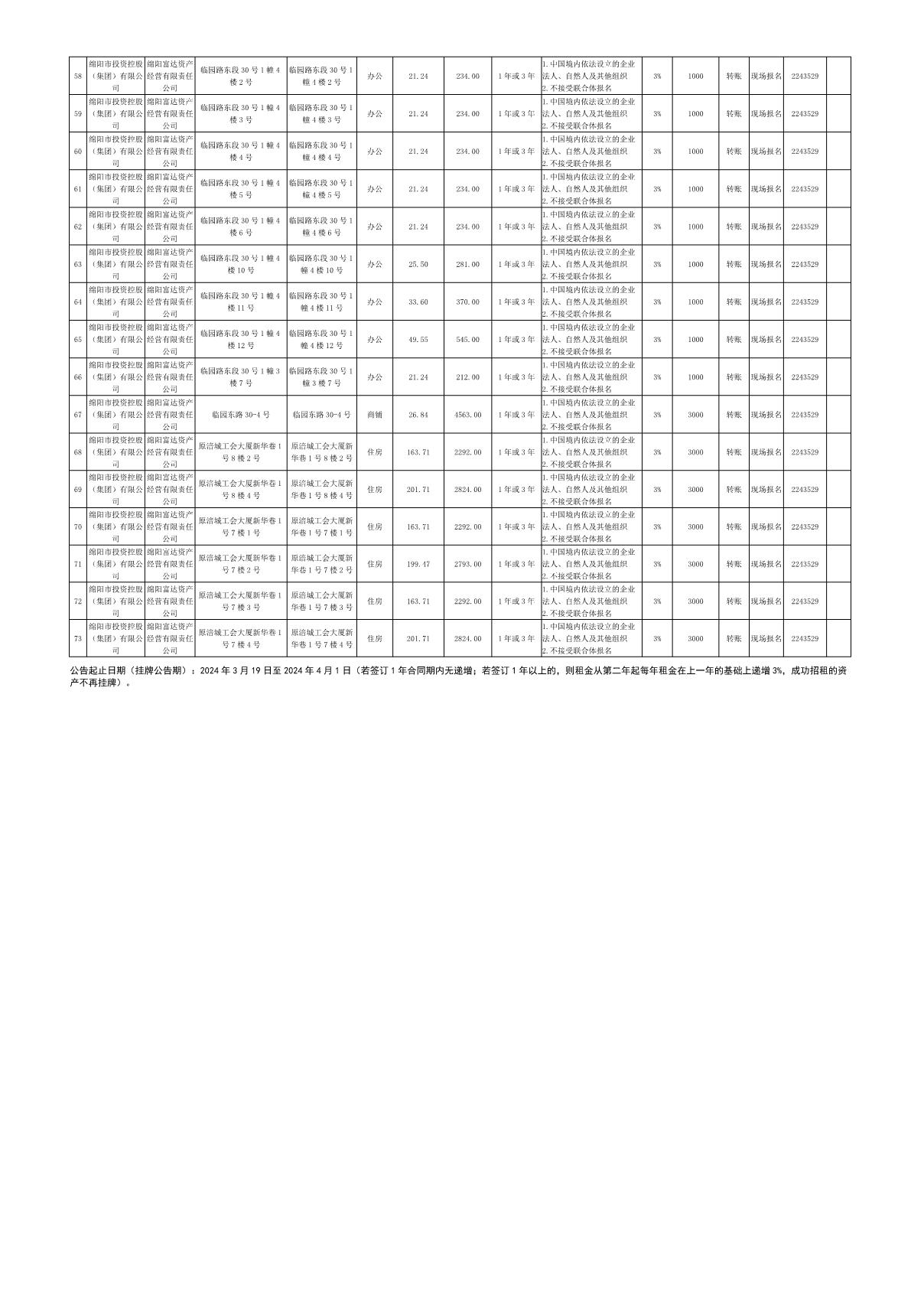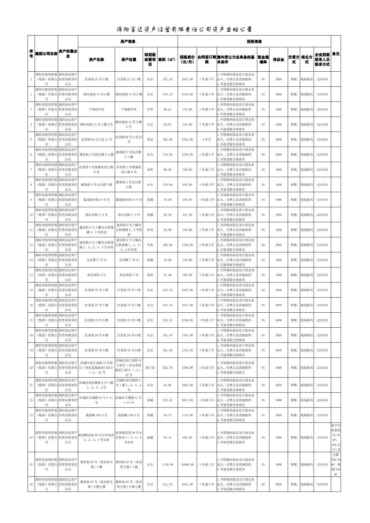 綿陽富達(dá)資產(chǎn)經(jīng)營(yíng)有限責(zé)任公司資產(chǎn)出租公告