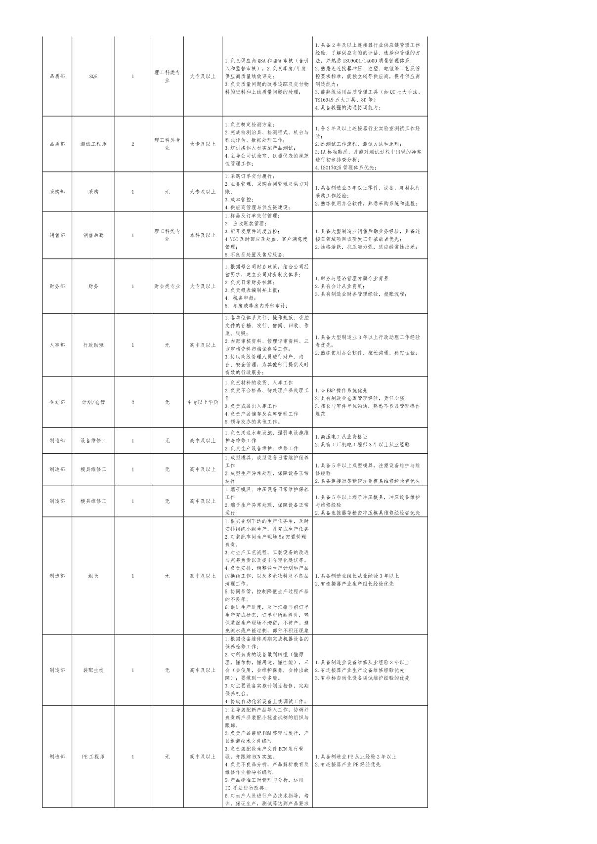 一、 崗位信息