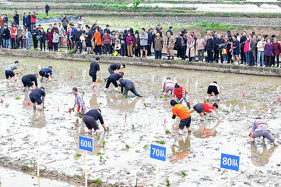 “開秧門”是合江縣傳統(tǒng)農(nóng)耕文化中的一項(xiàng)重要民俗活動(dòng),也是合江縣非遺文化的重要組成部分?;顒?dòng)現(xiàn)場(chǎng),合江21個(gè)鄉(xiāng)鎮(zhèn)(街道)組成的21支代表隊(duì),參加了玉米種植競(jìng)賽、農(nóng)機(jī)展示、水稻育秧展示、農(nóng)資識(shí)別、植保綠色防控裝置展示、農(nóng)人三項(xiàng)接力等農(nóng)技展示、培訓(xùn)、競(jìng)賽活動(dòng),以此來弘揚(yáng)傳統(tǒng)民俗文化,展示合江傳統(tǒng)民俗特色和現(xiàn)代農(nóng)耕文明。