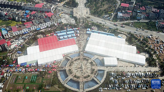 這是3月20日在安仁縣拍攝的中草藥和農(nóng)副產(chǎn)品交易集市(無(wú)人機(jī)照片)。