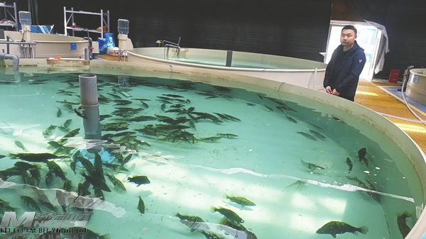 久旺農(nóng)牧繁育基地現(xiàn)有養(yǎng)殖面積1000余畝,工廠化繁育車間4000平方米。記者走進(jìn)繁育車間看到,在恒溫環(huán)境與循環(huán)水流的供給下,一口口玻璃鋼材質(zhì)的“培育缸”整齊排列,每口缸中分別飼養(yǎng)著鱖魚的親魚、魚苗、成魚和餌料魚。