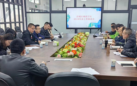 綿陽(yáng)新聞網(wǎng)訊 春歸啟新程,奮楫正當(dāng)時(shí)。為了貫徹落實(shí)“三化一式”教育理念,促進(jìn)學(xué)區(qū)各校優(yōu)質(zhì)均衡發(fā)展,提高各項(xiàng)工作的針對(duì)性與實(shí)效性,3月20日上午,涪城區(qū)城南學(xué)區(qū)2024年春學(xué)區(qū)工作推進(jìn)會(huì)在綿陽(yáng)市實(shí)驗(yàn)中學(xué)南河校區(qū)會(huì)議室召開(kāi)。此次會(huì)議由城南學(xué)區(qū)學(xué)區(qū)長(zhǎng)、綿陽(yáng)市實(shí)驗(yàn)小學(xué)黨支部書記涂久尚主持,涪城區(qū)教體局副局長(zhǎng)周正,城南學(xué)區(qū)18所學(xué)校校長(zhǎng)、教科室主任40余人參加會(huì)議。