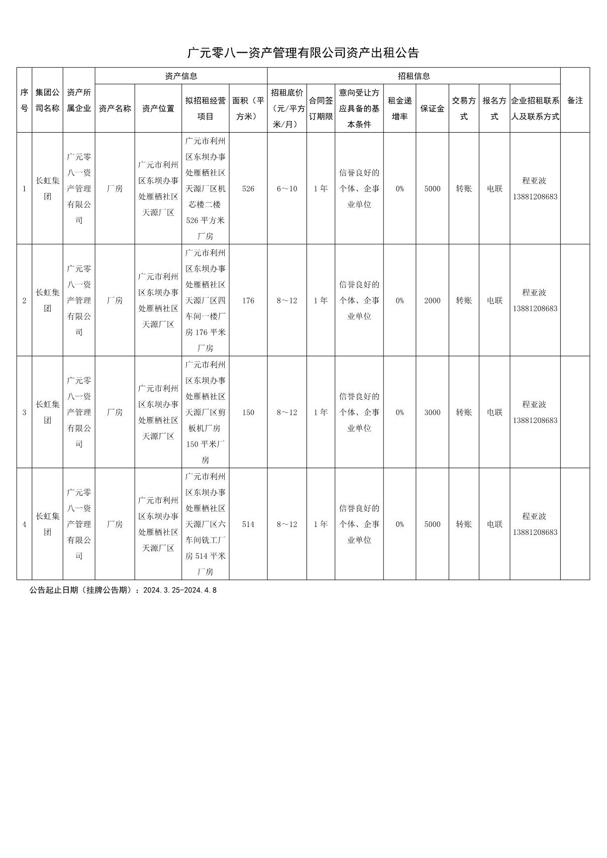 廣元零八一資產(chǎn)管理有限公司資產(chǎn)出租公告