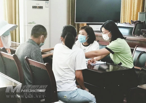 涪城區(qū)教體局工作人員正在為學生家長講解“潤禾”助學行動相關政策