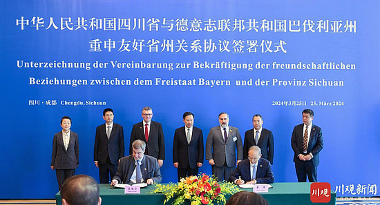隨后,黃強與索德爾分別代表雙方簽署《中華人民共和國四川省與德意志聯(lián)邦共和國巴伐利亞州重申友好省州關(guān)系協(xié)議》。