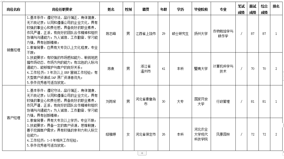 根據(jù)四川虹信軟件股份有限公司發(fā)布的招聘公告及招聘相關(guān)規(guī)定,經(jīng)筆試、面試等程序,現(xiàn)將筆試(面試)成績予以公示。