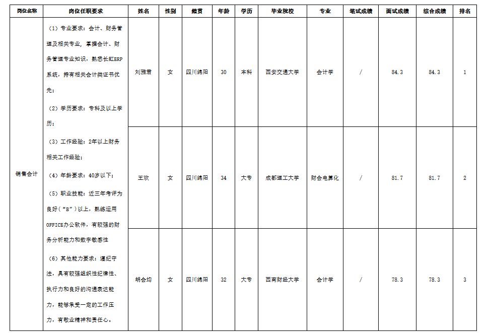 根據(jù)四川愛(ài)創(chuàng)科技有限公司-財(cái)務(wù)管理部發(fā)布的招聘公告及招聘相關(guān)規(guī)定,經(jīng)面試,現(xiàn)將面試成績(jī)予以公示。