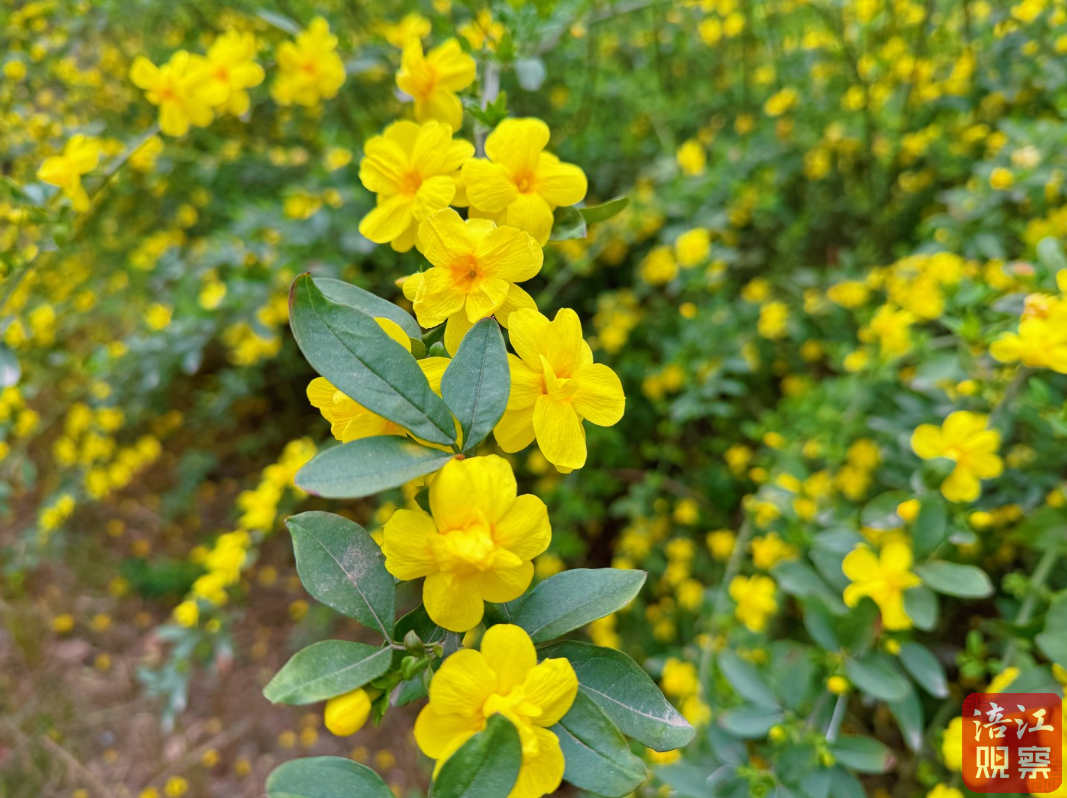 在綿陽鹽亭縣,迎春花爭相開放,點(diǎn)點(diǎn)金黃,十分奪目。陣陣微風(fēng)襲來,一朵朵金黃的迎春花隨著披垂的細(xì)長枝條飛舞,不時(shí)還散發(fā)出悠悠淡香。