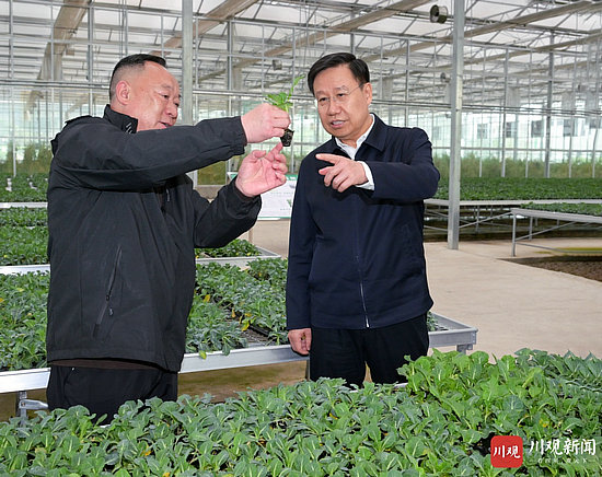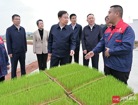 春分剛過,眼下正是春季農業(yè)生產的大忙時節(jié)。德陽市中江縣是全省產糧大縣,糧食總產量連續(xù)17年居全省各縣(市、區(qū))第一位。王曉暉深入該縣永太鎮(zhèn)明星村、多寶村田間地頭,了解現(xiàn)代農業(yè)發(fā)展和春耕備耕進展情況。在明星村的中化農業(yè)中江服務中心,王曉暉觀看農機裝備展示,聽取數(shù)字農業(yè)、現(xiàn)代設施農業(yè)發(fā)展情況介紹,步入育苗大棚察看科技賦能育苗提高果蔬品質產量等情況。在多寶村小春田管示范基地和大春育秧示范基地,他沿著生產步道認真察看水稻秧苗育苗和冬小麥種植及長勢,與當?shù)馗刹?、農業(yè)專合社負責人詳細交談,詢問今年夏糧播種和基地春耕備耕、專合社農事社會化服務等情況。王曉暉指出,農時不等人、過時錯一季。要不誤農時有力有序推進春播春管各項工作,抓好農業(yè)防災減災,為實現(xiàn)全年糧食穩(wěn)產增產打牢基礎。他說,充分調動農民種糧積極性,一方面要給予相應政策補貼支持,另一方面也要圍繞降低種植成本、提高比較效益想辦法,因地制宜發(fā)展糧經(jīng)統(tǒng)籌、糧經(jīng)輪作等新模式,讓農民種糧有更多收益。王曉暉強調,四川是我國糧油、生豬、茶葉等農產品大省,是重要糧食主產區(qū),保障糧食和重要農產品穩(wěn)定安全供給是我們必須扛起的重大責任。各地要把糧食生產作為“三農”工作的頭等大事來抓,加強耕地保護和高標準農田建設,推行適度規(guī)模經(jīng)營,加大良種、良機、良法推廣力度,不斷提高農業(yè)綜合生產能力,加快打造新時代更高水平的“天府糧倉”,為全國發(fā)展大局多作貢獻。