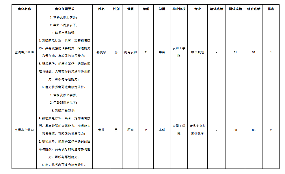 根據四川智易家網絡科技有限公司(長虹·美菱中國區(qū))發(fā)布的招聘公告及招聘相關規(guī)定,經面試等程序,現將面試成績予以公示。