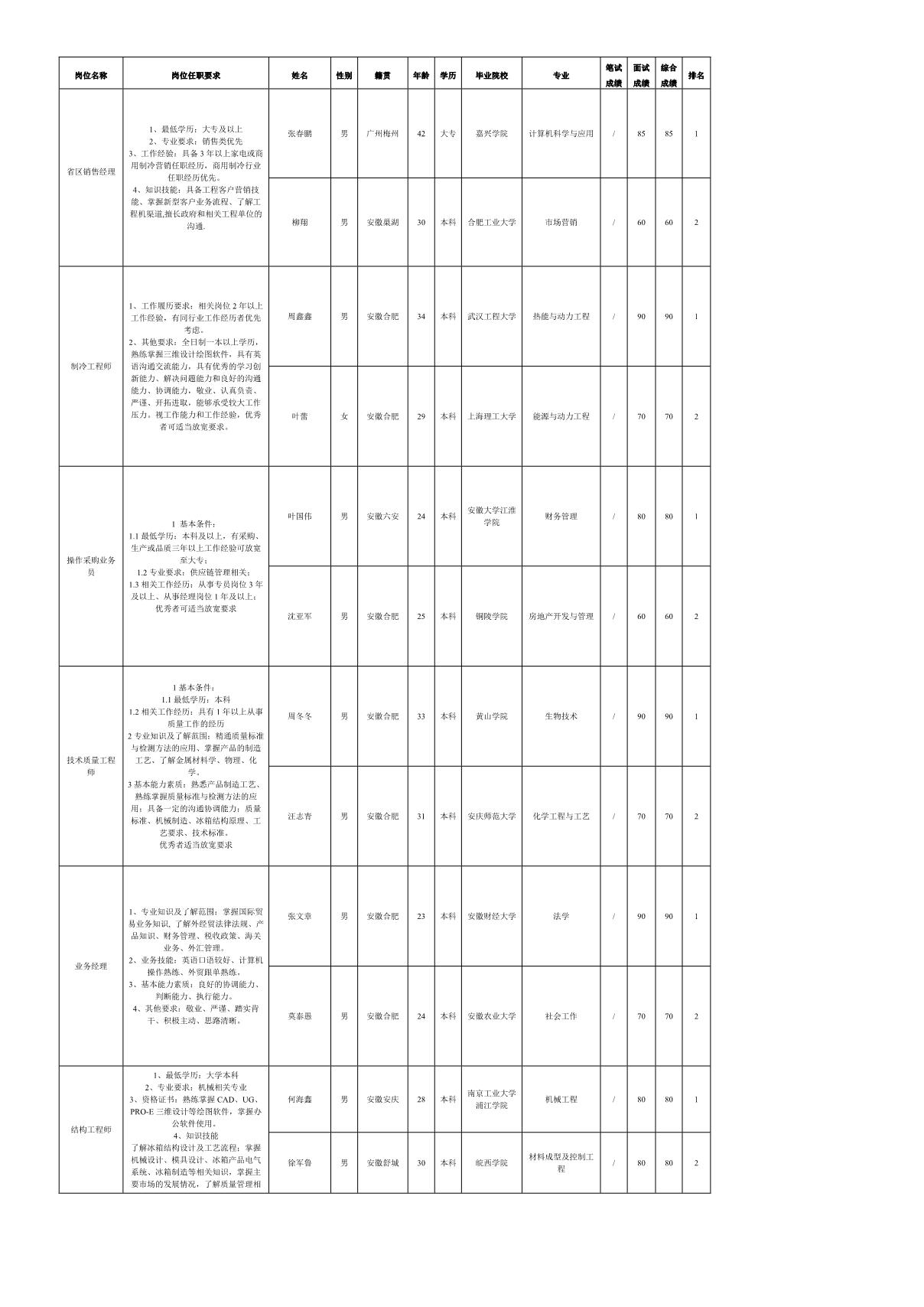 根據(jù)長(zhǎng)虹美菱股份有限公司發(fā)布的招聘公告及招聘相關(guān)規(guī)定,經(jīng)筆試、面試等程序,現(xiàn)將筆試(面試)成績(jī)予以公示。
