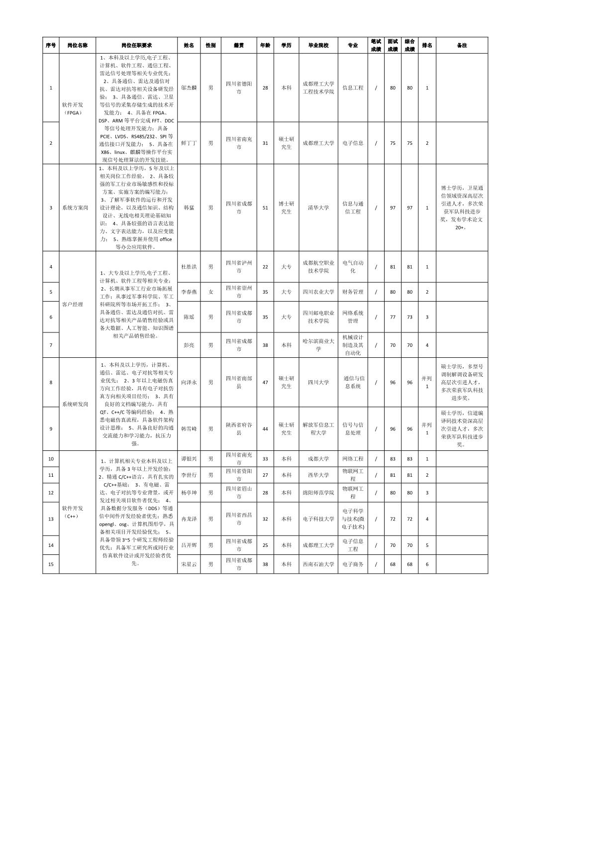 根據(jù)四川九州軟件有限公司發(fā)布的招聘公告及招聘相關規(guī)定,經筆試、面試等程序,現(xiàn)將筆試(面試)成績予以公示。