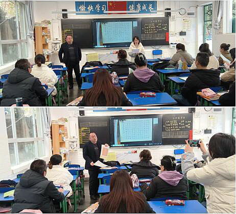 綿陽(yáng)新聞網(wǎng)訊 為了提升教師的漢字書(shū)寫(xiě)能力,掌握正確的書(shū)法教學(xué)專業(yè)技能和技巧,提升漢字書(shū)寫(xiě)教學(xué)效果和全校學(xué)生的書(shū)寫(xiě)質(zhì)量。近日,綿陽(yáng)市城郊小學(xué)邀請(qǐng)綿陽(yáng)書(shū)法名師譚春林老師到學(xué)校,為全體語(yǔ)文教師、數(shù)學(xué)、英語(yǔ)年輕骨干教師,開(kāi)展了以“勤學(xué)不輟 提升書(shū)寫(xiě)教學(xué)質(zhì)量”為主題的書(shū)法教學(xué)專題培訓(xùn)活動(dòng)。