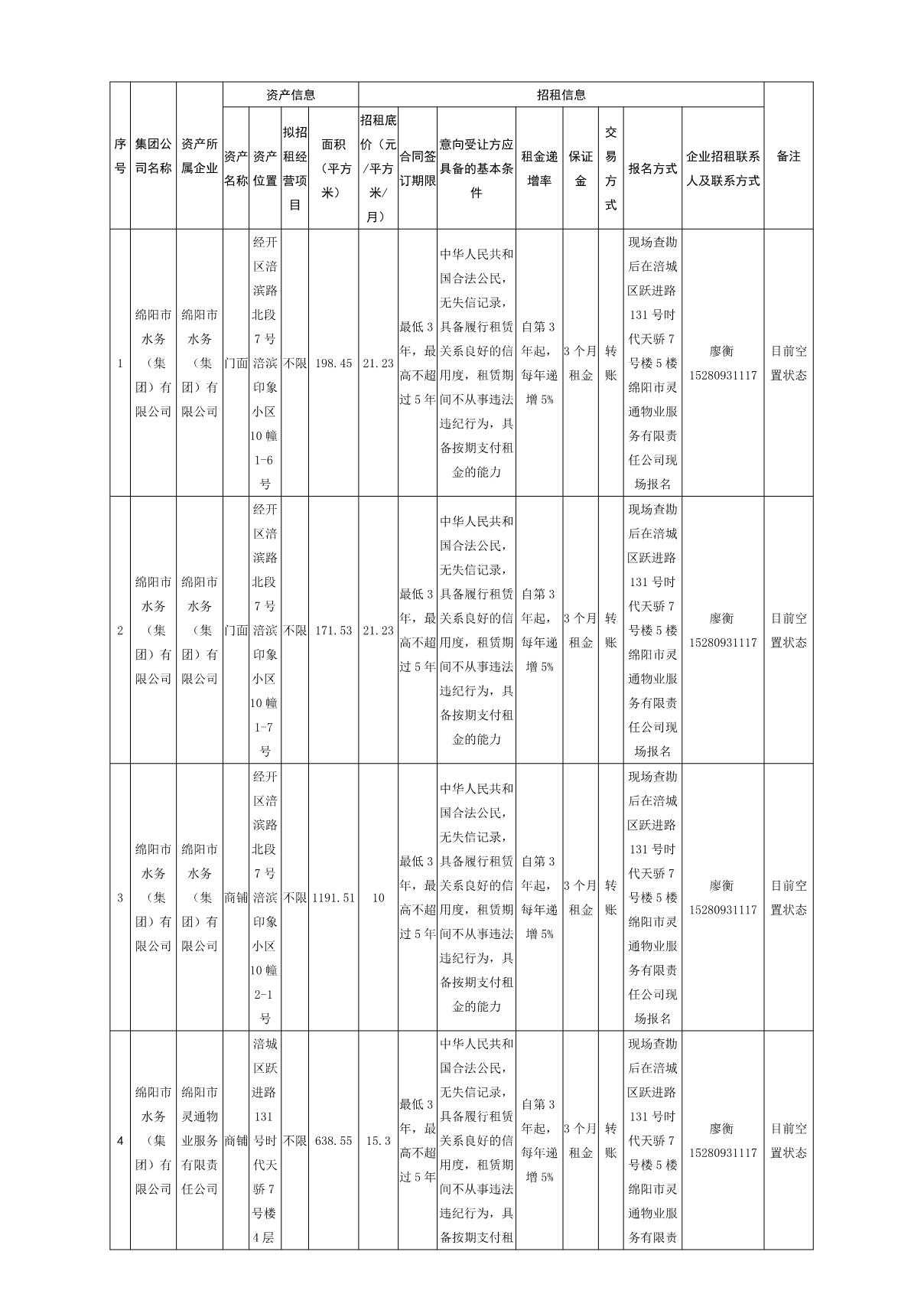 綿陽市水務(wù)(集團)有限公司資產(chǎn)出租公告