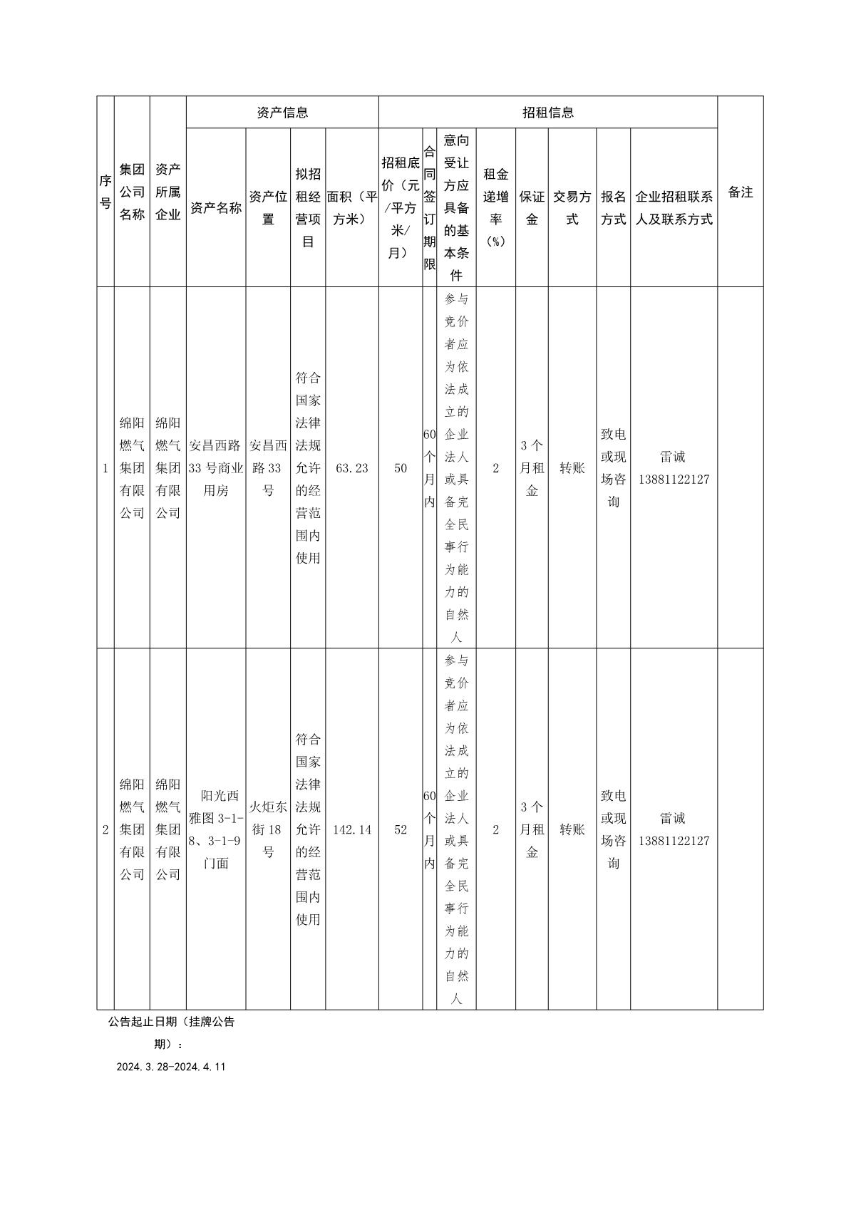 綿陽(yáng)燃?xì)饧瘓F(tuán)有限公司資產(chǎn)出租公告