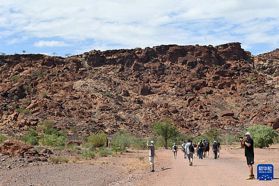 3月26日,在納米比亞庫內(nèi)內(nèi)省,游客參觀頹廢方丹巖畫遺址。