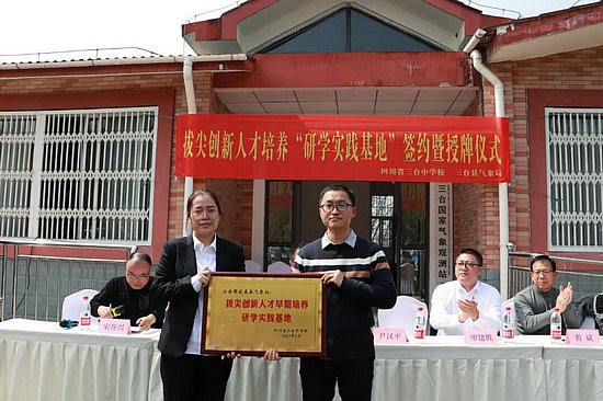 綿陽(yáng)新聞網(wǎng)訊 為了豐富拔尖創(chuàng)新人才早期培養(yǎng)基地學(xué)校的課程體系,進(jìn)一步探索拔尖創(chuàng)新人才早期培養(yǎng)新模式,2024年3月22日,三臺(tái)中學(xué)校與三臺(tái)縣氣象局在三臺(tái)國(guó)家氣象站隆重舉行了“拔尖創(chuàng)新人才早期培養(yǎng)研學(xué)實(shí)踐基地”簽約暨授牌儀式。三臺(tái)縣氣象局局長(zhǎng)雷春,副局長(zhǎng)廖建勝,三臺(tái)縣氣象臺(tái)臺(tái)長(zhǎng)蔣柯,三臺(tái)中學(xué)黨委副書記、副校長(zhǎng)尹漢平,三臺(tái)中學(xué)黨委副書記王恩虎,三臺(tái)中學(xué)黨委委員、副校長(zhǎng)曾斌,三臺(tái)中學(xué)副校長(zhǎng)宋開(kāi)興,教科處副主任陳亮及三臺(tái)中學(xué)60余名師生參與了本次簽約暨授牌儀式。
