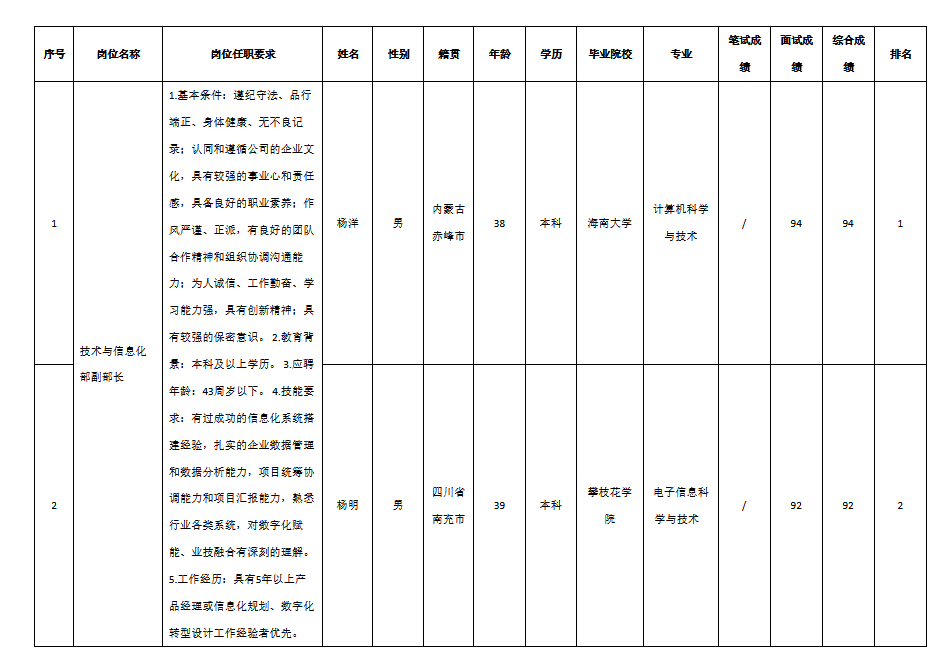 根據(jù)四川九州線纜有限責(zé)任公司發(fā)布的招聘公告及招聘相關(guān)規(guī)定,經(jīng)筆試、面試等程序,現(xiàn)將筆試(面試)成績予以公示。