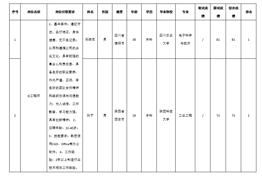 根據(jù)四川九華光子通信技術(shù)有限公司發(fā)布的招聘公告及招聘相關(guān)規(guī)定,經(jīng)筆試、面試等程序,現(xiàn)將筆試(面試)成績予以公示。