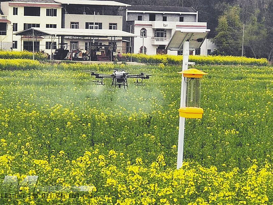該鎮(zhèn)在園區(qū)全面推行“有機(jī)肥+測土配方肥”,開展統(tǒng)防統(tǒng)治,采取釋放赤眼蜂、設(shè)置誘捕器和太陽能殺蟲燈等技術(shù)措施,實(shí)現(xiàn)全域綠色防控,推動農(nóng)藥、化肥減量增效。